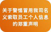 近日,我司發現有單位及個人假借我司名義,通過微信、電話、短信等形式向員工騙取個人信息,嚴重損害了員工···